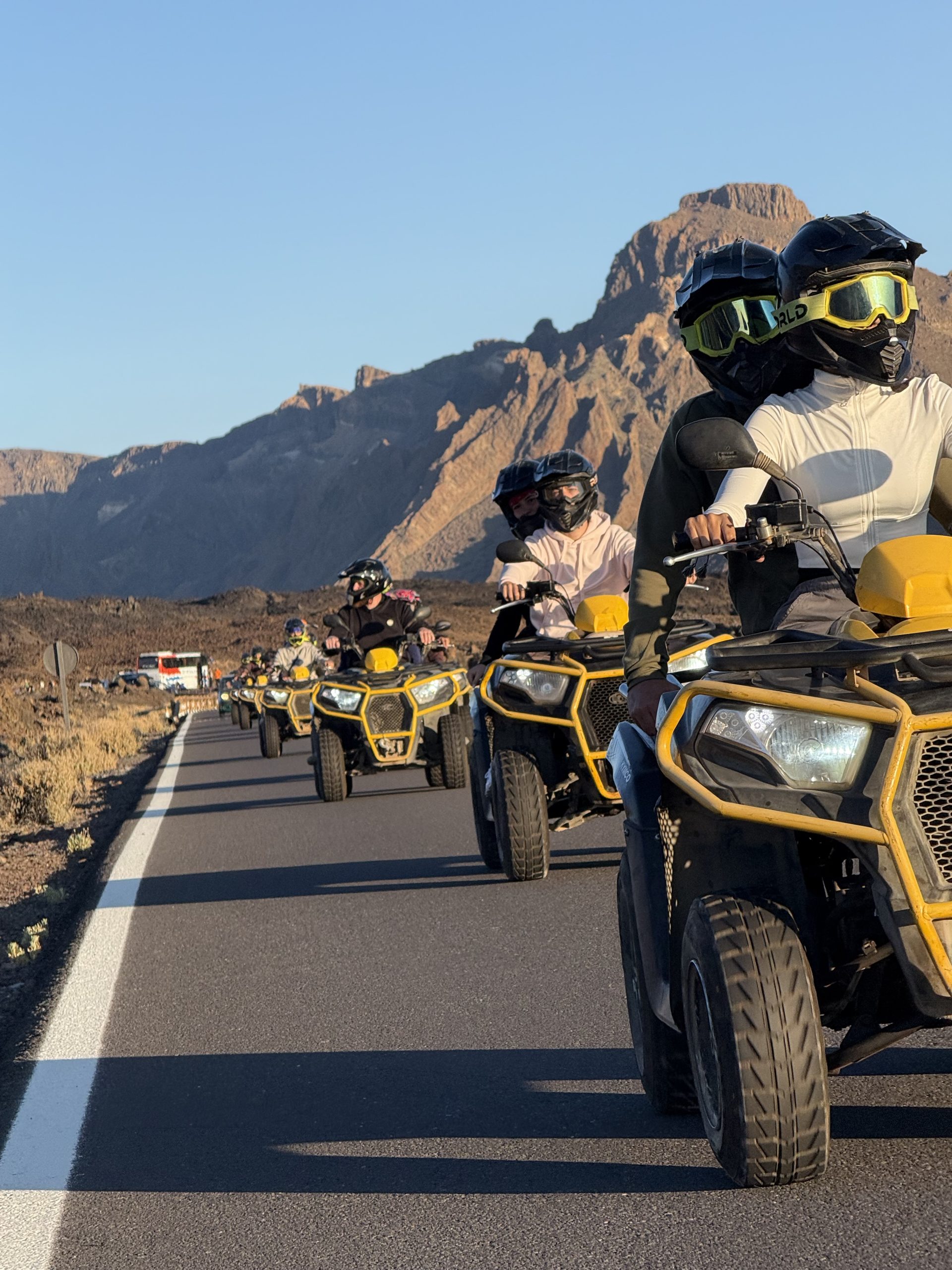 Drive your own quad along scenic volcanic roads while the sun sets behind Mount Teide, creating one of the most spectacular views in Tenerife.